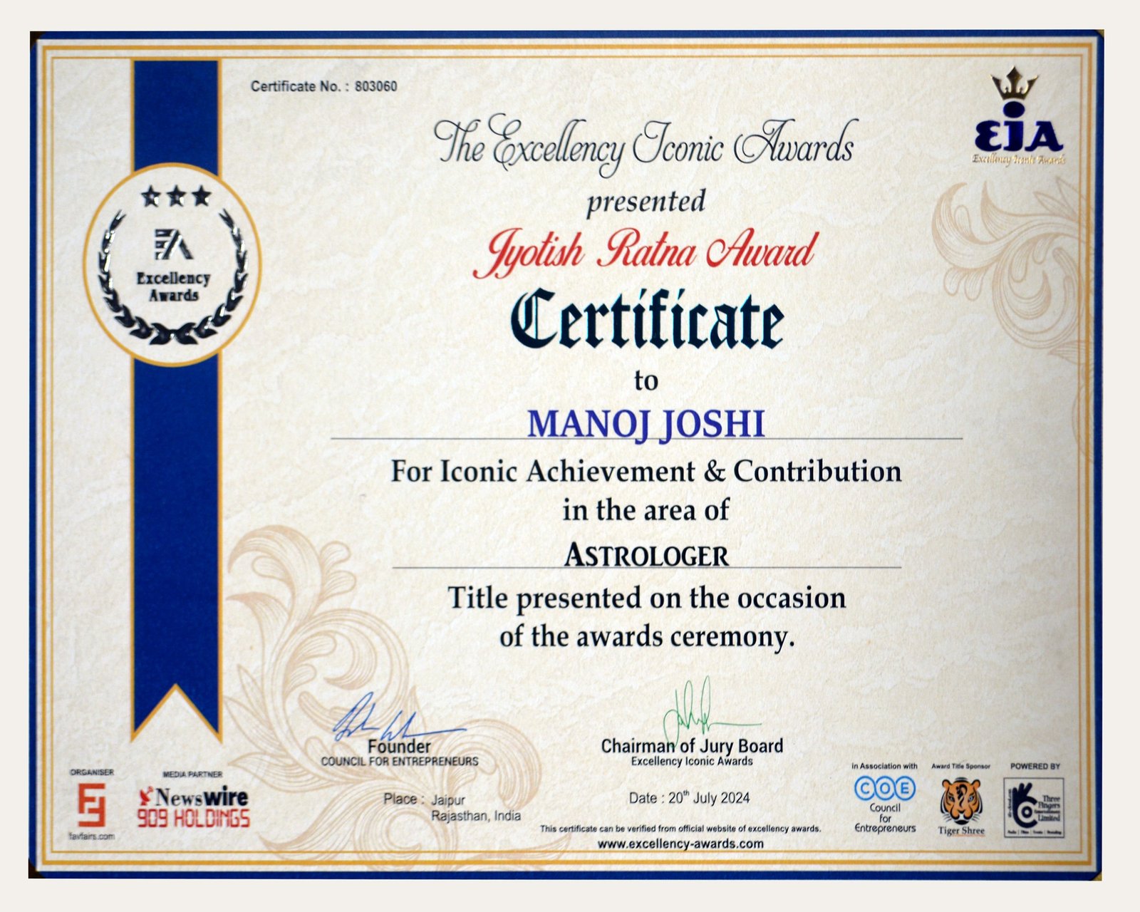 Astrologer Manoj Joshi Ji has been delivering outstanding Vedic astrology services globally for over the years. With his deep understanding and skills, he has assisted people in uncovering insights about their lives and discovering effective ways to address their challenges. Whether your questions are about careers, finances, relationships, or any other life area, Astro Manoj Joshi Ji has the solutions you seek. He provides precise forecasts, tailored advice, and empathetic guidance to help you lead a rewarding life. Reach out to him today and uncover the mysteries of your future!