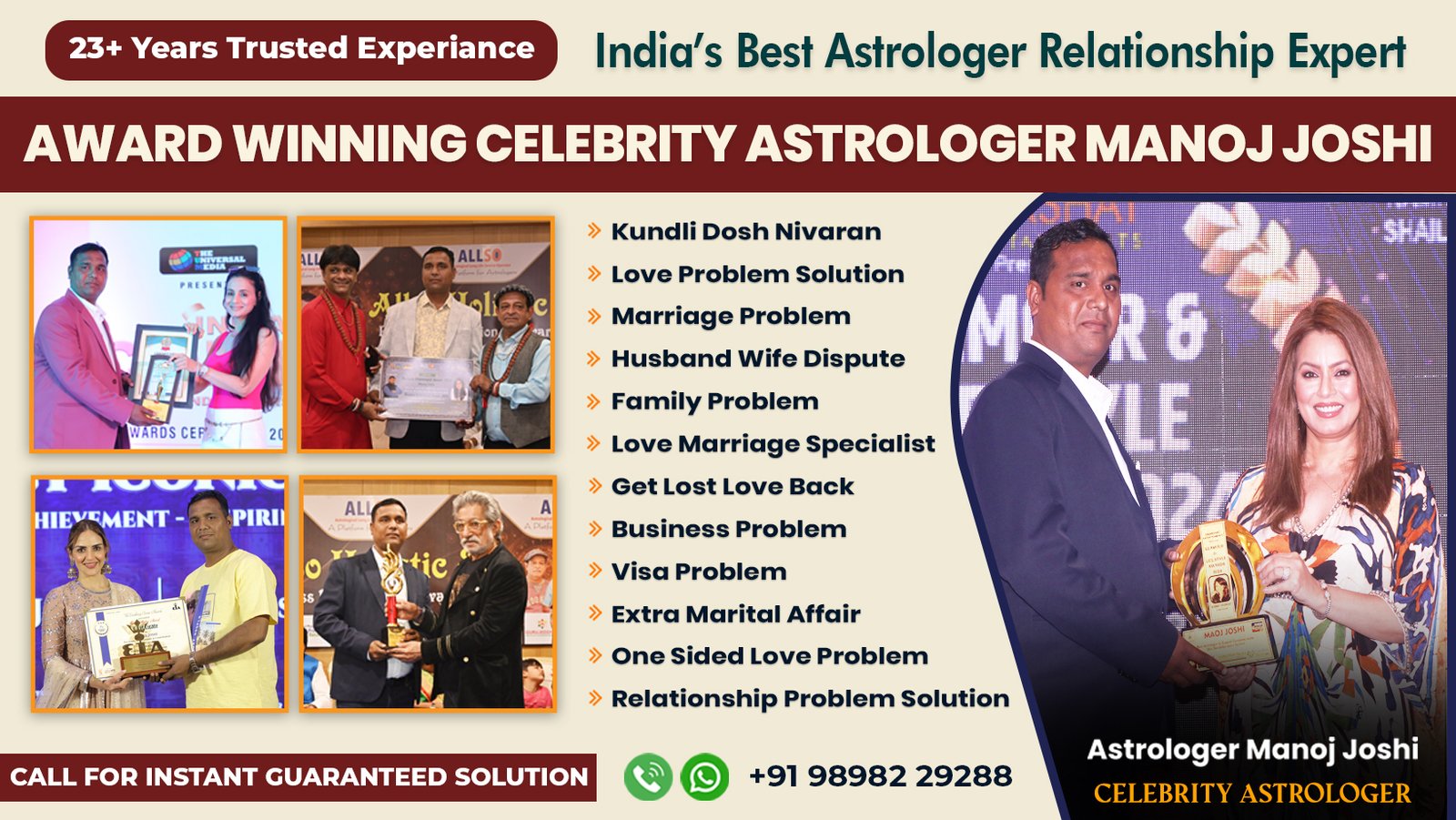 As a specialist astrologer, we always prefer to provide constructive and spiritual solutions to our customers for their life problems. Vedic astrology approach has recognized us as one of the most prominent astrologers in India. Get in touch with our renowned Astro Manoj Joshi today and embark on a positive journey!